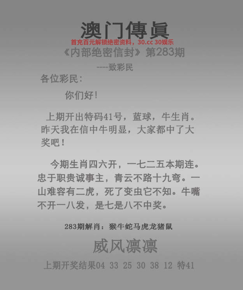 283期【绝杀三肖】【牛猪猴】开:鸡45准